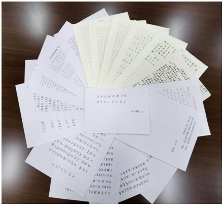院全體員工響應活動號召,積極主動、態(tài)度認真,以硬筆書法的形式抒發(fā)了內(nèi)心深處對黨、對國家深深的熱愛之情,濃濃的感恩之心。